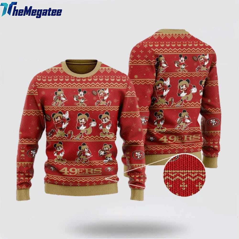 This festive sweater is the ultimate Christmas gift for NFL fans who also happen to love Mickey Mouse! Imagine the joy on their faces as they unwrap this unique and one-of-a-kind sweater featuring their favorite Disney character captaining the San Francisco 49ers. Not only is this sweater perfect for spreading holiday cheer, but it also allows fans to show off their team spirit in a fun and playful way. Made with high-quality materials and attention to detail, this sweater is sure to become a cherished piece in any fan's collection. Don't miss out on the opportunity to surprise your loved ones with this adorable and festive sweater!