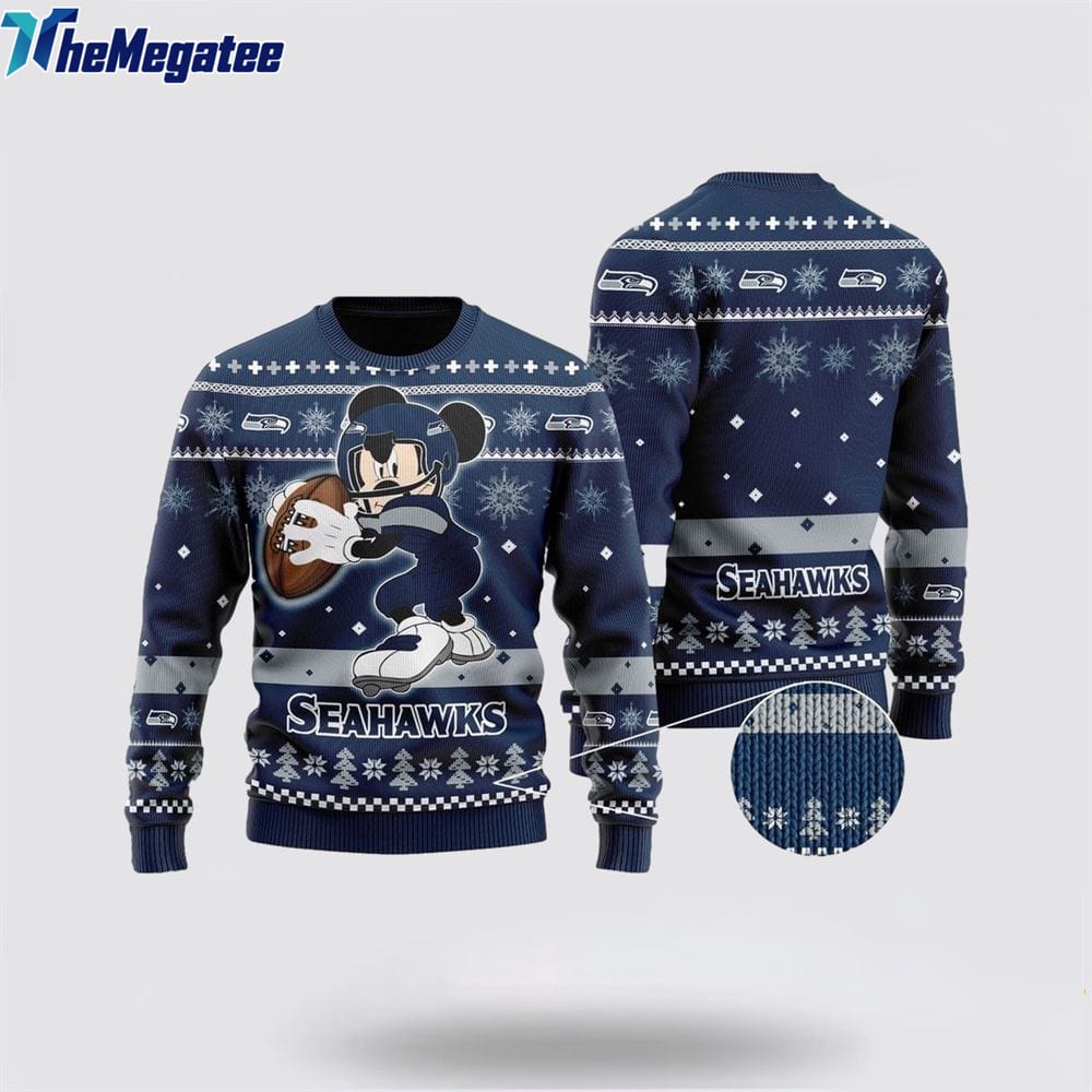 Seattle Seahawks Ugly Christmas Sweater Mickey Mouse, Christmas Gift For NFL Fans Details