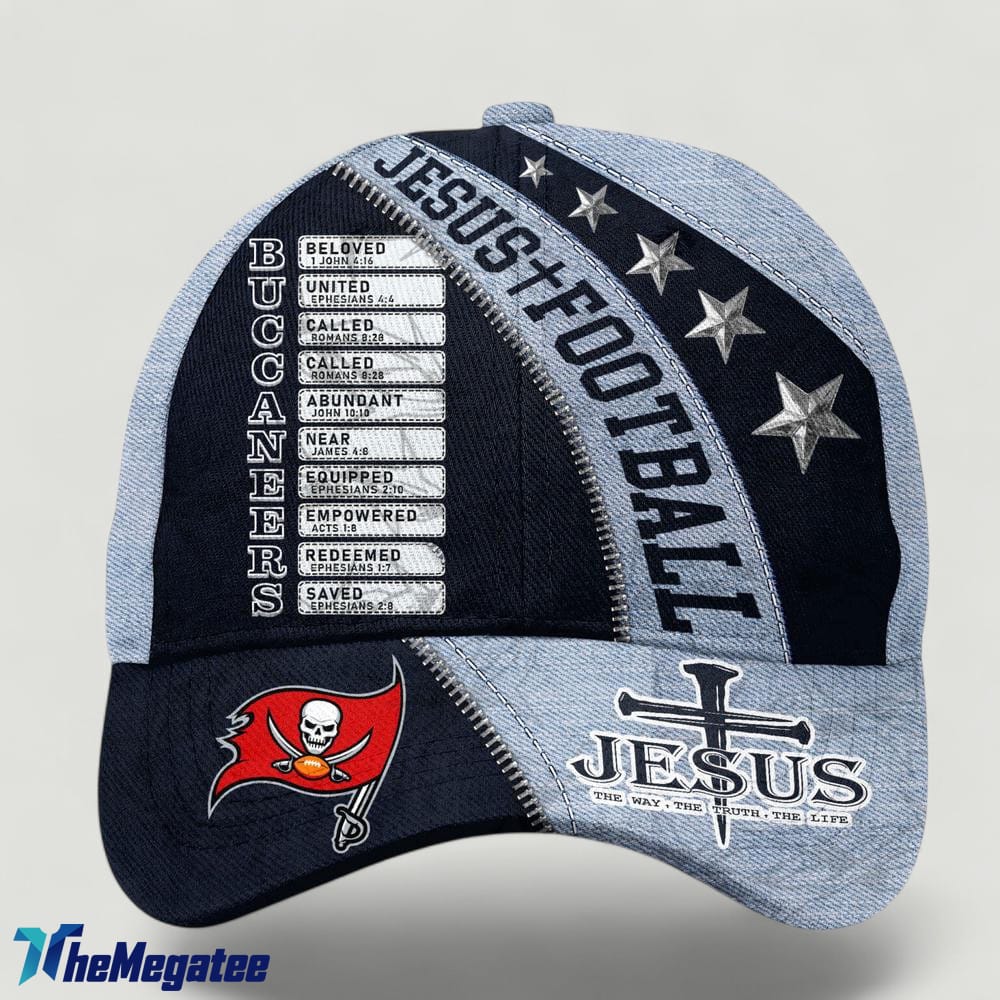 Are you a die-hard Tampa Bay Buccaneers fan looking to show off your team spirit in a unique and meaningful way? Look no further than this exclusive Jesus-themed baseball cap. Not only does this cap feature the iconic Tampa Bay Buccaneers logo, but it also incorporates powerful imagery of Jesus as The Way, The Truth, The Life. This unique design is sure to spark conversations and make a bold statement wherever you go. Whether you're headed to the game or just running errands around town, this baseball cap is the perfect way to combine your love for the Buccaneers with your faith. Don't miss out on this one-of-a-kind accessory that showcases your devotion to both your favorite team and your spiritual beliefs. Order yours today and stand out from the crowd!